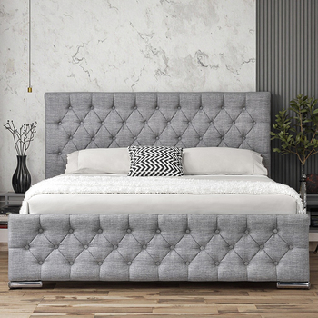 Willsoon Modern Grey Fabric Diamond Tufted Soft Bed with Plywood Panel Hydraulic Storage & Chrome Legs