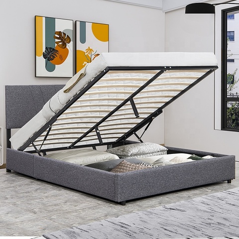 Willsoon Lit de rangement relevable rembourré gris au design moderne Queen King Meubles de chambre à coucher luxueux Rangement spacieux Maison
