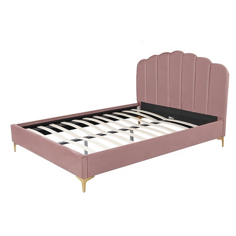 Lit double en velours rose rembourré au design moderne Willsoon Cadre en bois doux et solide pour meubles de maison et chambre à coucher
