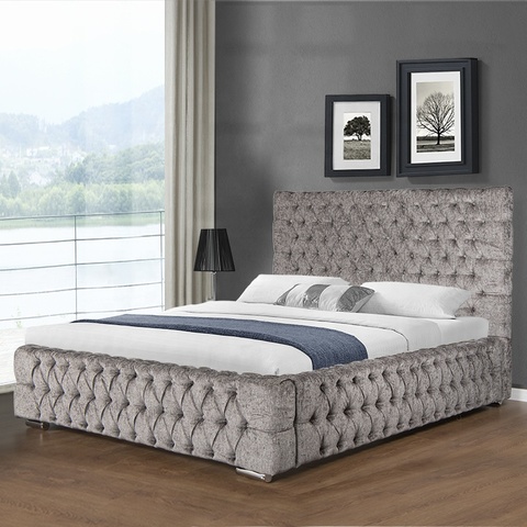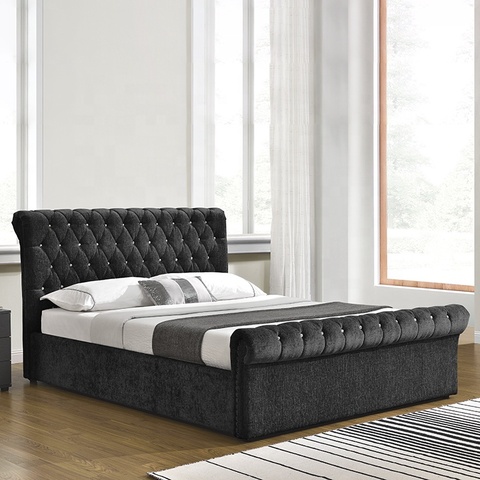 Willsoon Chesterfield Sleigh Design Ottoman Crystal Button Gas Lift Storage Lit en velours écrasé Panneau en bois massif et contreplaqué