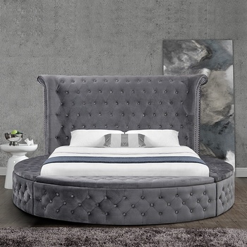Willsoon เฟอร์นิเจอร์กระจุกเตียงคู่หรูหราพร้อมพื้นที่จัดเก็บเตียงหุ้มกํามะหยี่ยกโครงเตียงขนาดคิงไซส์สว่างเต็มรูปแบบ